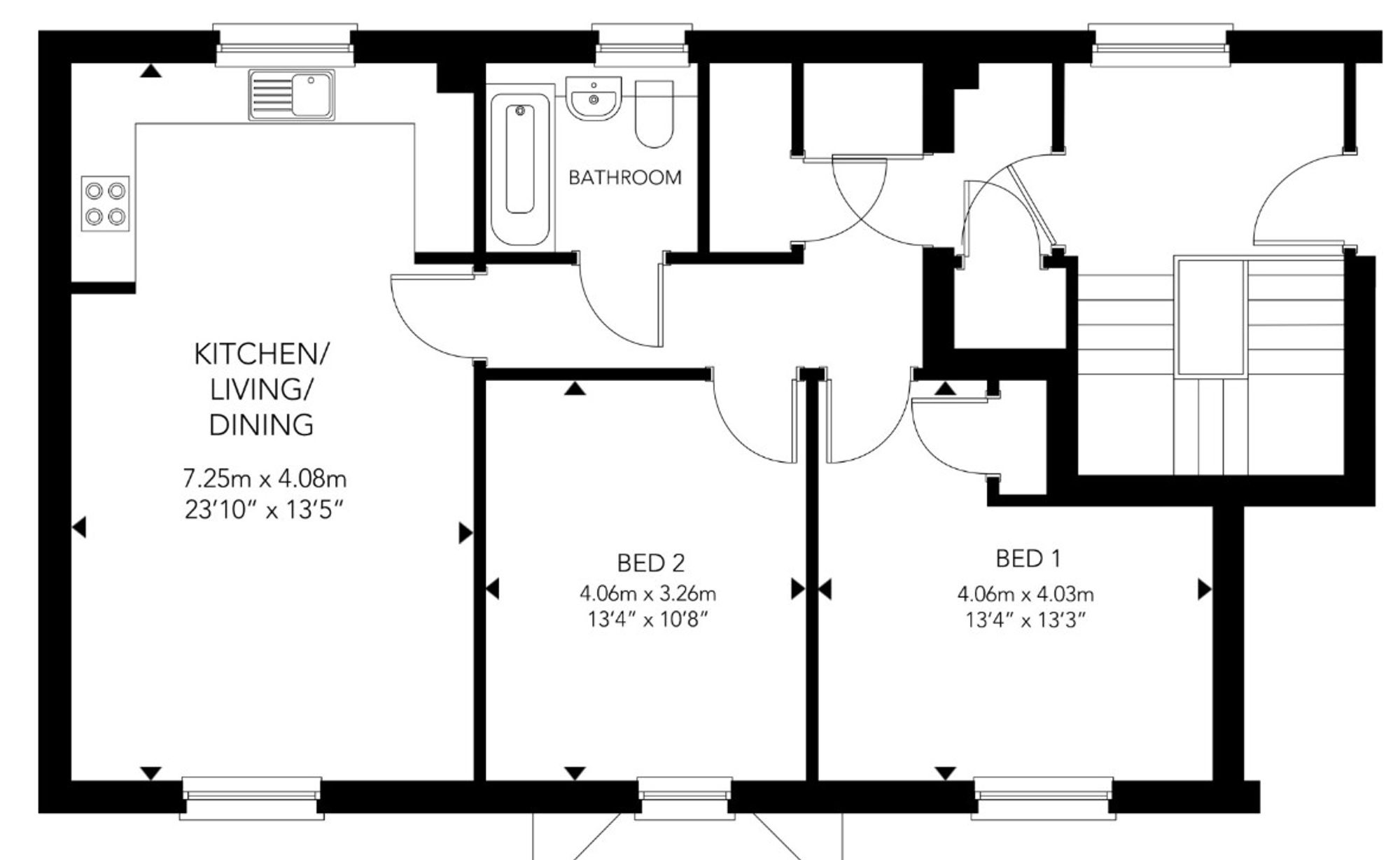 Plot 18 is a well-designed first-floor apartment offering bright, contemporary accommodation throughout. A spacious entrance hallway leads through to an impressive open-plan kitchen/living/dining room, providing an excellent space for both everyday living and entertaining. The modern kitchen is fitted with a range of quality units and fully integrated appliances, including an oven, hob and fridge freezer, complemented by stylish finishes and quality flooring throughout the apartment.